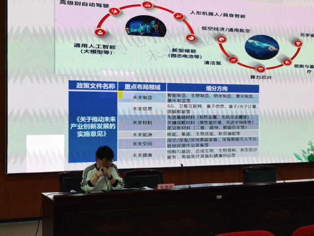 仇玮民首先对《推动未来产业创新发展的实施意见》进行了深入解读,重点分析了未来产业的重点布局领域,包括元宇宙、脑机接口、量子信息等前沿科技方向。仇老师特别结合365英国上市官网的专业特色,介绍了新能源汽车零部件供应商领域的发展潜力,鼓励学生关注行业动态,提前做好职业规划。