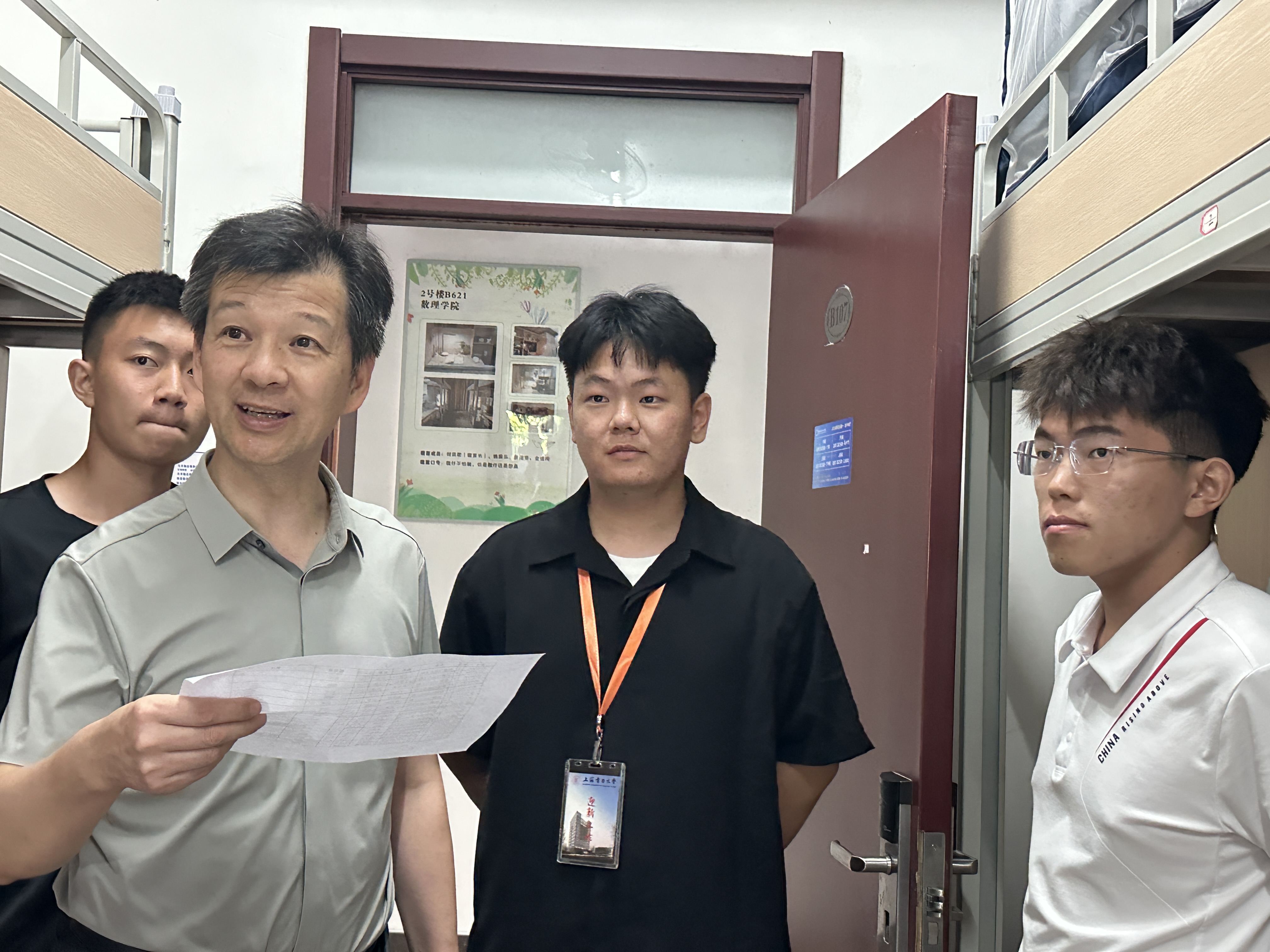 报到日下午,学院党政领导班子与辅导员一同深入新生宿舍,亲切看望刚刚安顿下来的新同学。走访中,院领导与新生及家长进行了亲切交流,细致询问同学们的生源地、入学感受及生活适应情况,耐心解答大家关心的问题,并勉励同学们要尽快转变角色,适应新环境,做好学业规划,互相关心、共同进步。亲切的问候与真诚的关怀让新生们深切感受到了365英国上市官网大家庭的温暖。