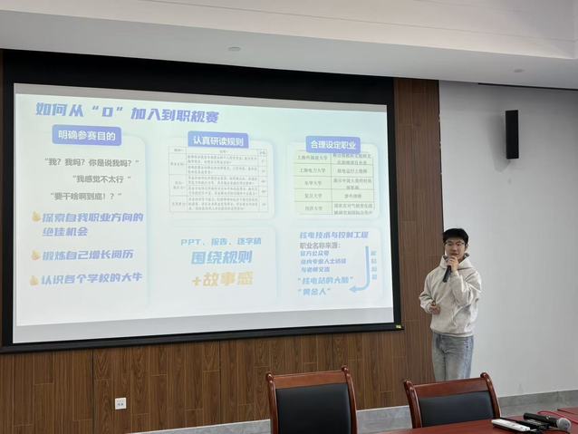 本次赛事特邀英国365官网上一届全国总决赛金奖得主李威鸿同学担任评委,与学院党委副书记涂莹亮、全体辅导员共同组成院赛评审团。赛前,李威鸿结合自身斩获全国金奖的备赛经历与职业发展心得,向参赛学子分享了实用备赛技巧,强调“职业规划要像机械齿轮一样环环相扣”。他还现场演示了参赛答辩 PPT 的优化方法,为学子提供了极具针对性的指导,助力大家精准打磨参赛作品。