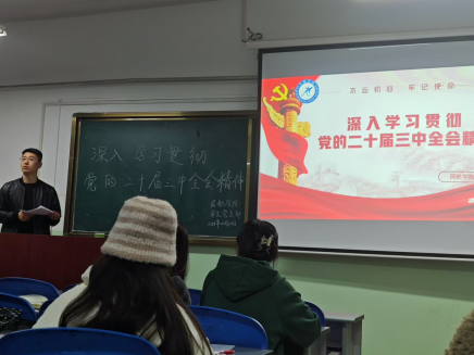 为贯彻落实学习党的二十届三中全会精神,加强党员、积极分子的思想建设,提高党员、积极分子的政治觉悟和理论水平,激励同学们在新时代勇担使命,奋发向前。Beat365唯一官方网站学生党支部于2024年10月23日在教学北楼433教室开展“深入学习贯彻党的二十届三中全会精神”主题学习活动,全体学生党员、预备党员、入党积极分子参加了本次学习活动。