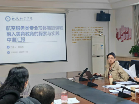 龚端悦以航空服务类专业形体舞蹈课程融入美育教育的探索与实践为主题进行发言,明确将美育目标纳入形体舞蹈课程的重要意义,希望不仅关注学生舞蹈技能和形体塑造,更强调培养学生对美的感知、鉴赏和创造能力,使学生们能从艺术的角度理解和展现航空服务中的优雅与魅力。