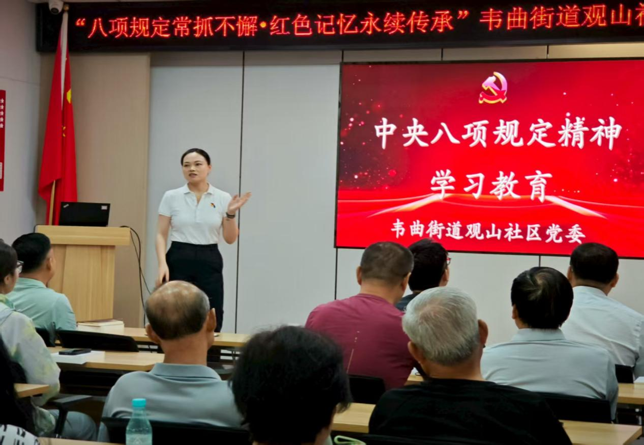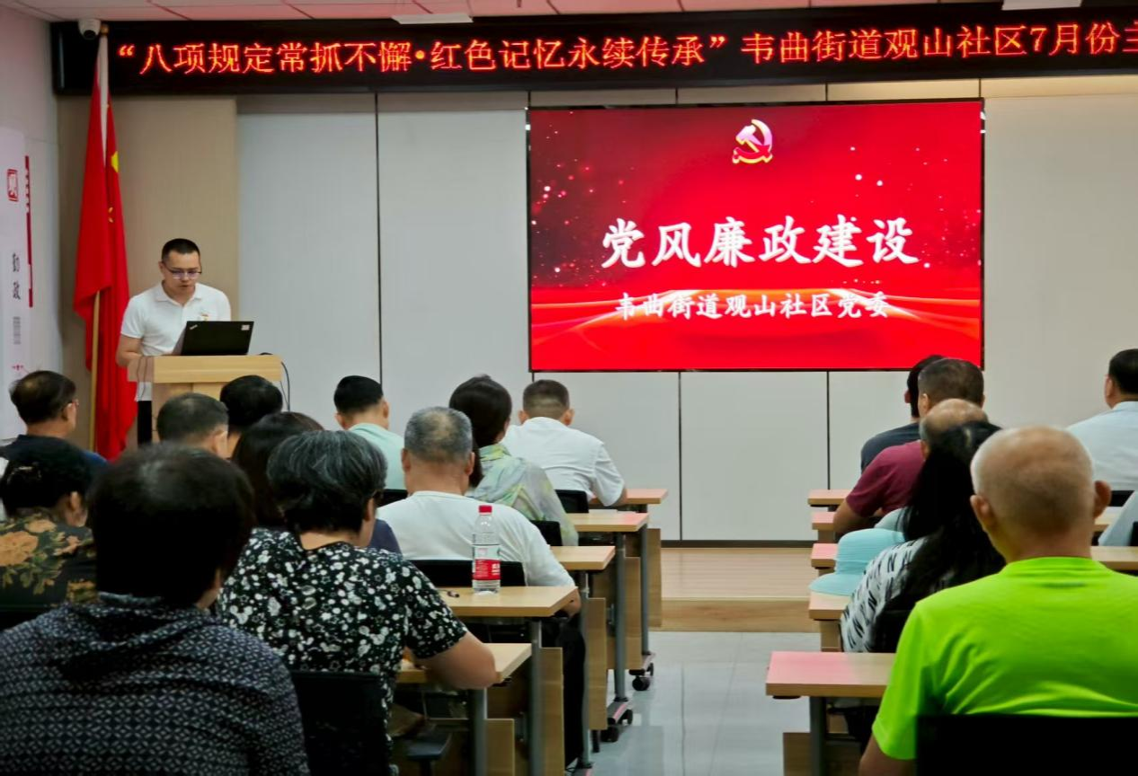 主题教育学习环节,社区党员与来自“翼展观山”志愿服务团队的何志伟带领党员深入学习《深入贯彻中央八项规定精神,全力以赴抓好学习教育》等文件,并剖析违反中央八项规定精神典型案例。通过理论与案例结合,以“身边事”警醒“身边人”,让“八项规定是长期有效的铁规矩、硬杠杠”的思想深入人心